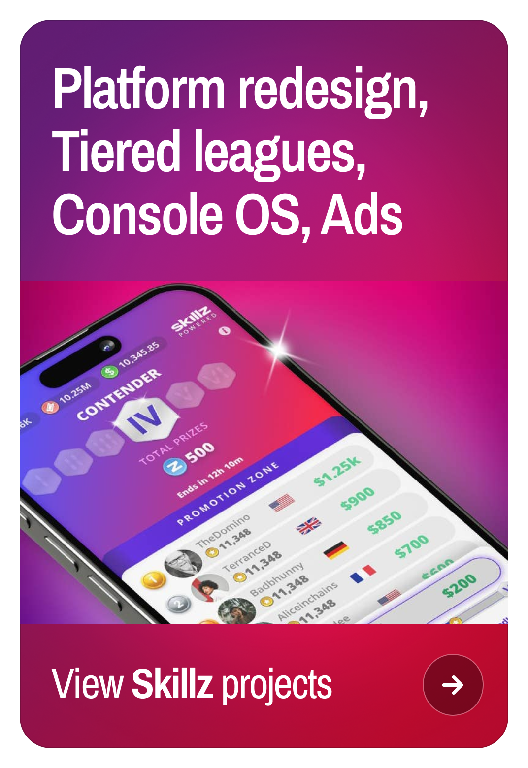 Freemium mobile gaming honed my focus in user motivation & behavior, data-informed design, and rapid iteration & testing. I now bring those insights to broader product ecosystems.