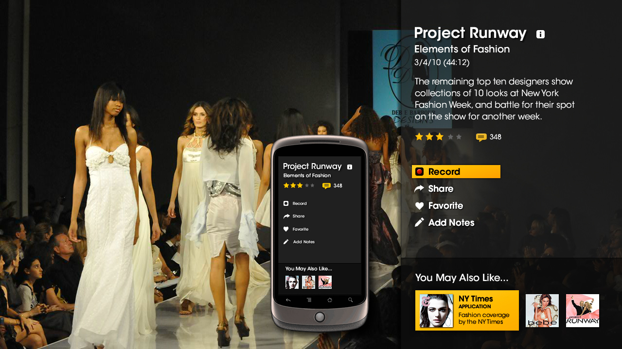 This app featured synchronized controls on various screens, contextually suggested content, and synchronous playback.