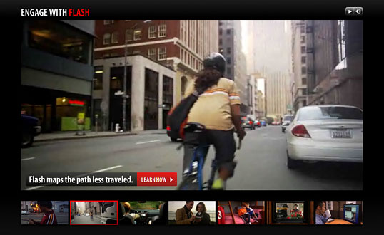 As one of three designers for our interactive marketing team, I designed many of Macromedia and Adobe's interactive experiences. We used After Effects and Flash/Air to showcase the software capability. We also created all of the on-screen experiences for Adobe conference, such as MAX.