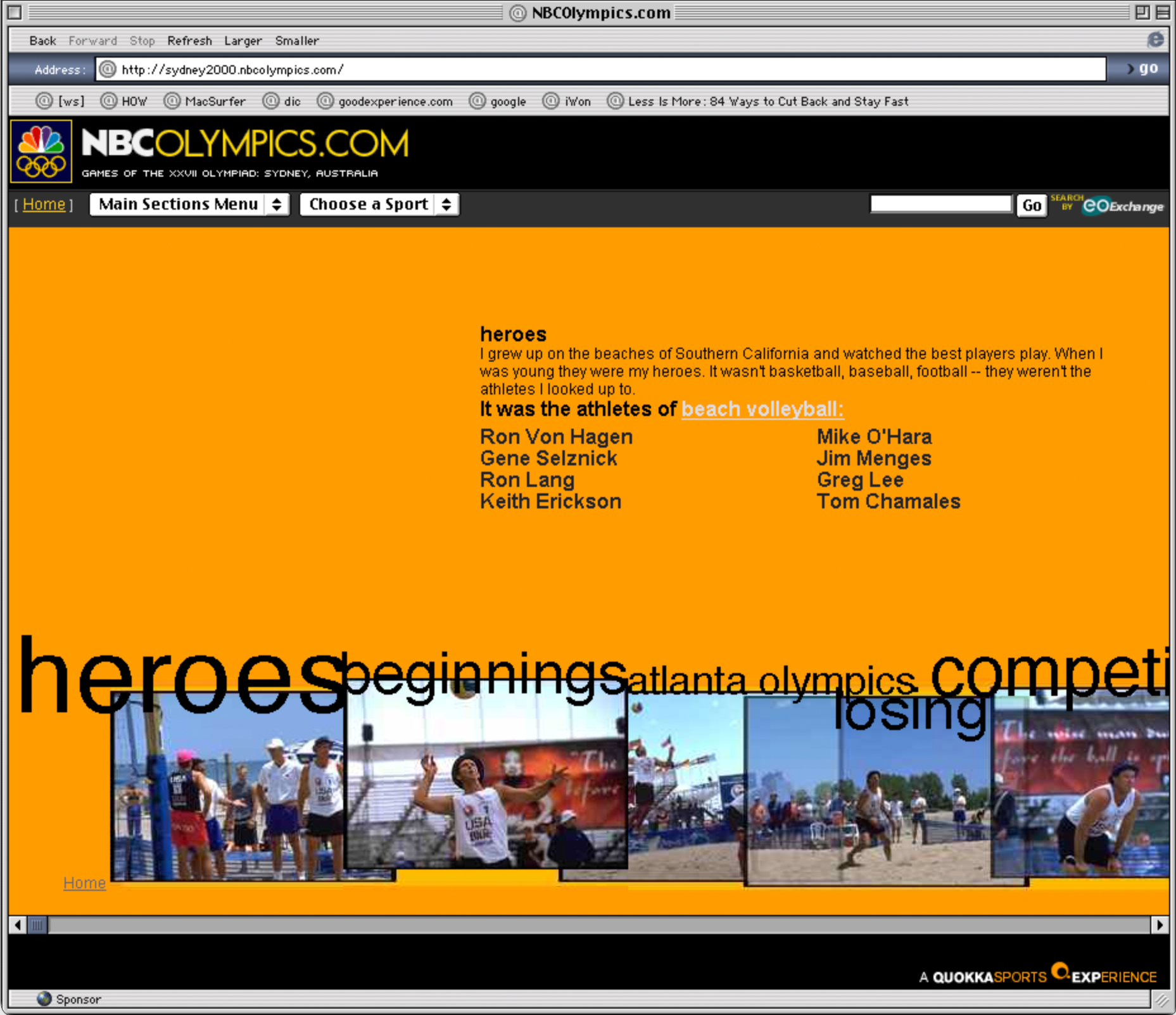 I led the design for Quokka’s most ambitious and successful project: NBC’s groundbreaking first live Olympic Games coverage website.